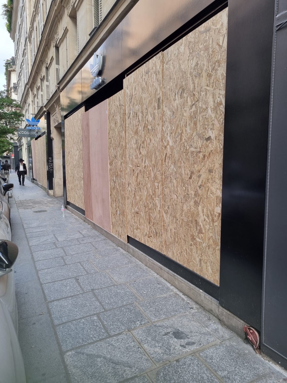 Une méthode traditionnelle et éprouvée pour protéger les vitrines de magasin consiste à installer des panneaux en bois, comme le contreplaqué ou l’OSB (panneau de copeaux orientés). Ces matériaux fournissent une protection physique robuste pour sécuriser votre vitrine contre divers risques et menaces.